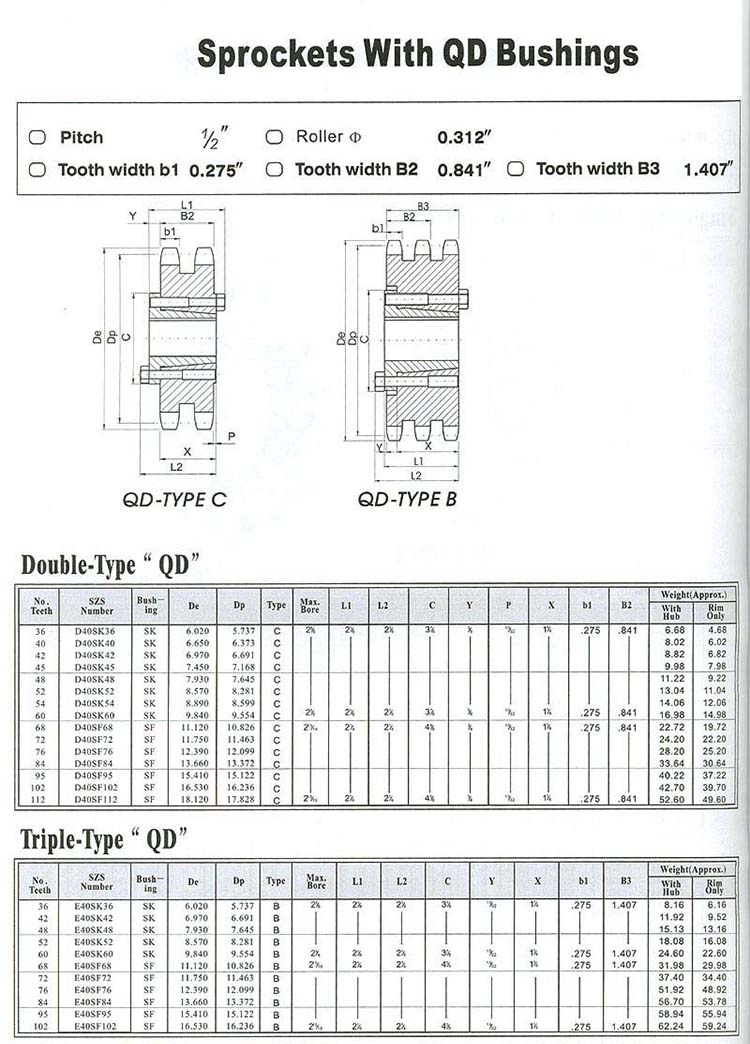 Sprockets With QD Bushings NO.40-2/40-3